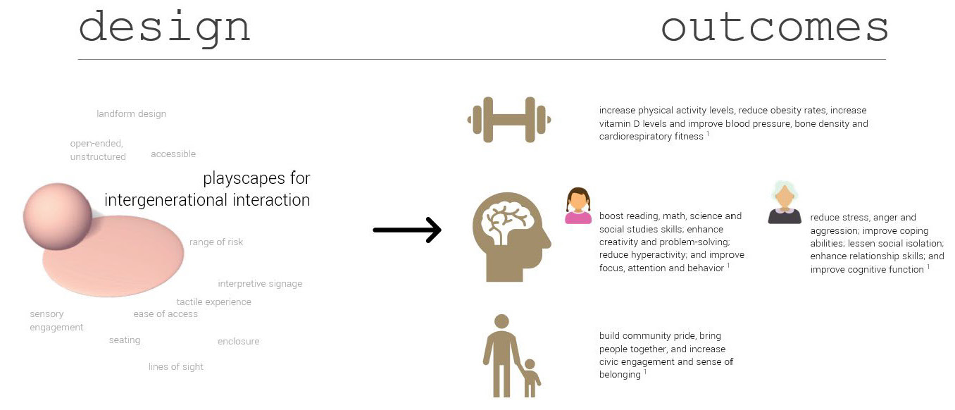 By creating spaces for intergenerational interaction to occur in playful environments, it will increase the physical, mental, and social stimulation of all ages, thus improving overall health and wellbeing.