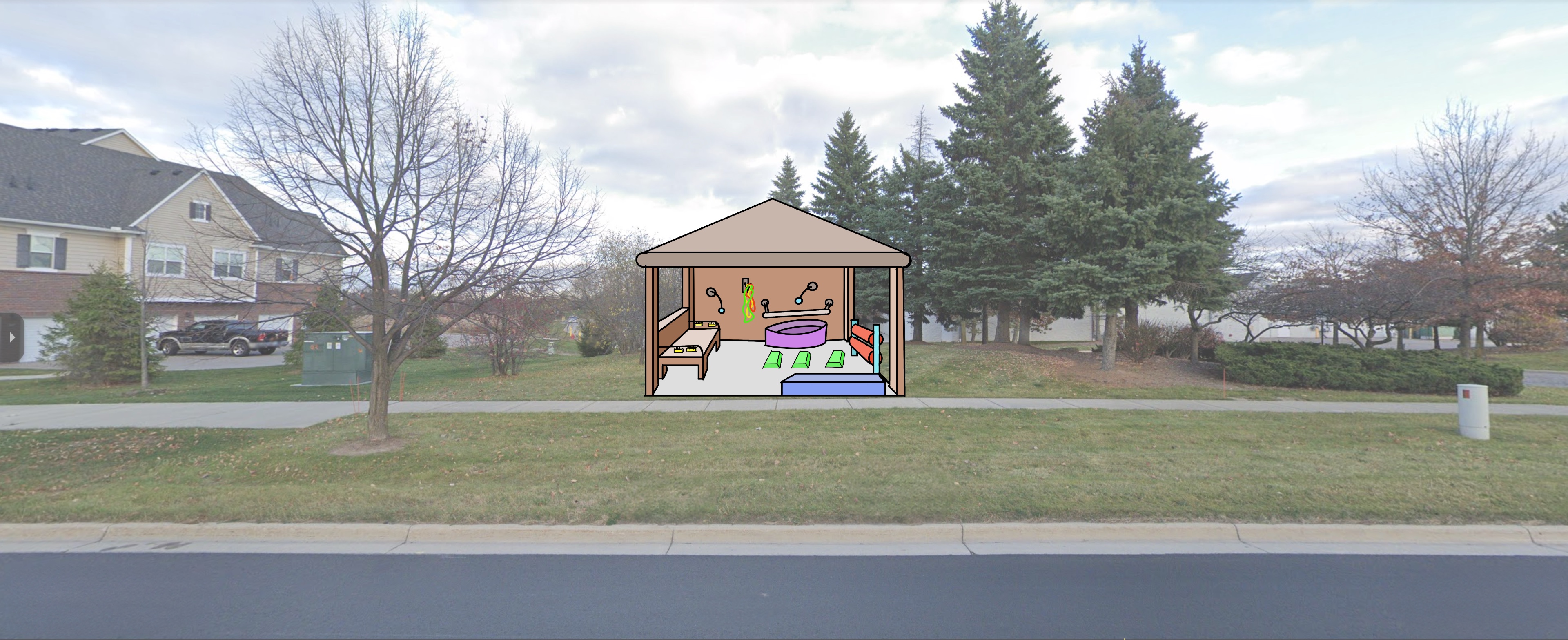 This intervention will focus on the sensation of touch through the structure as well as art. This intervention will promote community engagement by allowing local artists and makers to exhibit their art along the walls of this rest area. These pieces of art will focus on very touchable art that can be tactile as well as puzzle solving. By including the ideas of pegboard there can be an exchange of play for different arrangements of colored pegs and textured pegs between adults and children. This will allow all to engage in the bench in different ways and create a variability to the area. This will help manage stress through these very fidget based interventions.