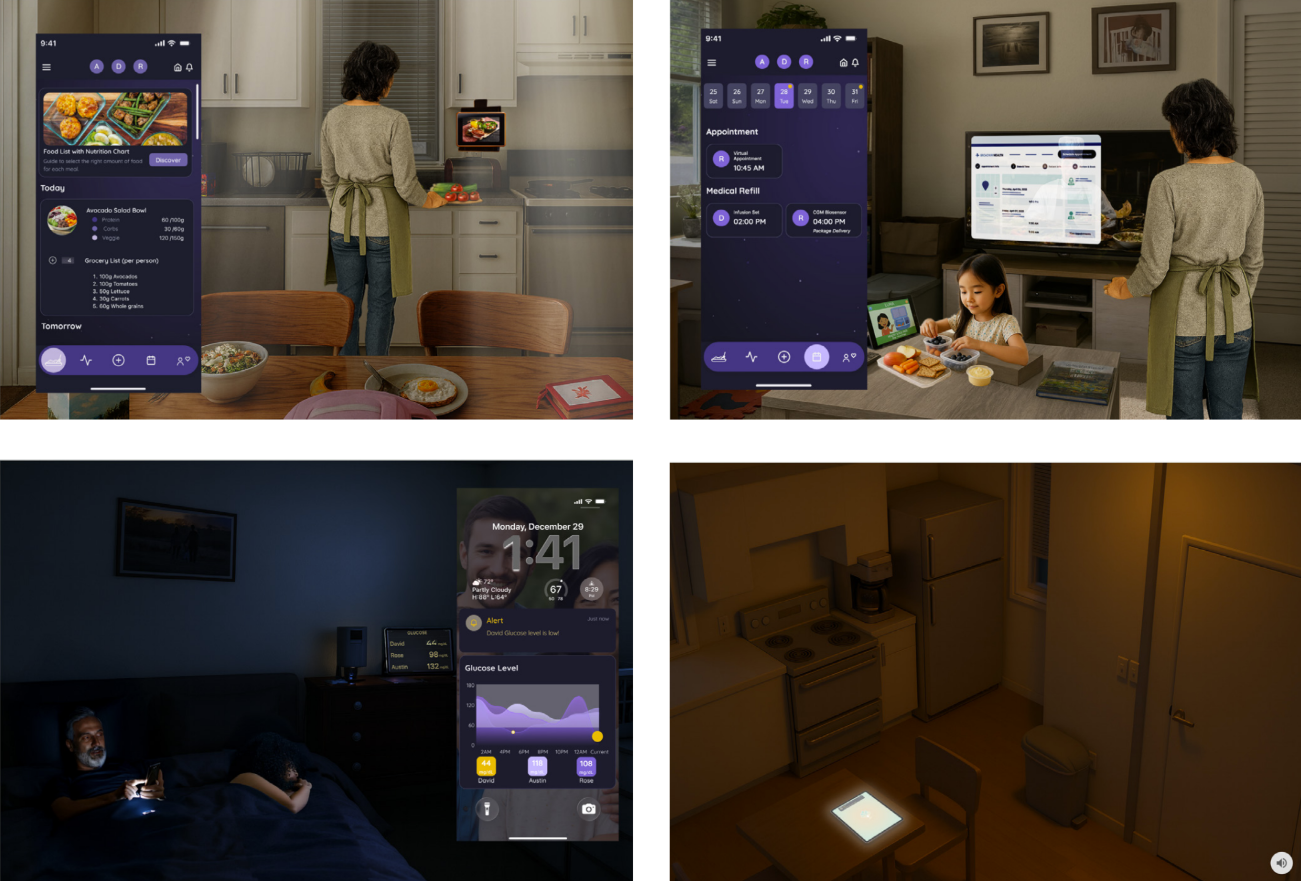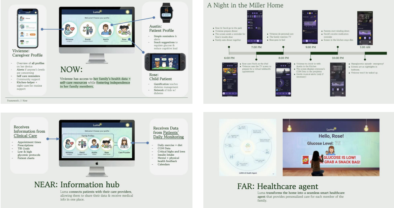 Over time, LUMA evolves from a supportive app for visualizing and managing diabetes care into a bridge between clinical and home environments, ultimately enabling the home itself to function as a care agent. LUMA reduces the cognitive load Vivienne carries as the primary caregiver by empowering her family members to take greater responsibility for their health and daily diabetes management.