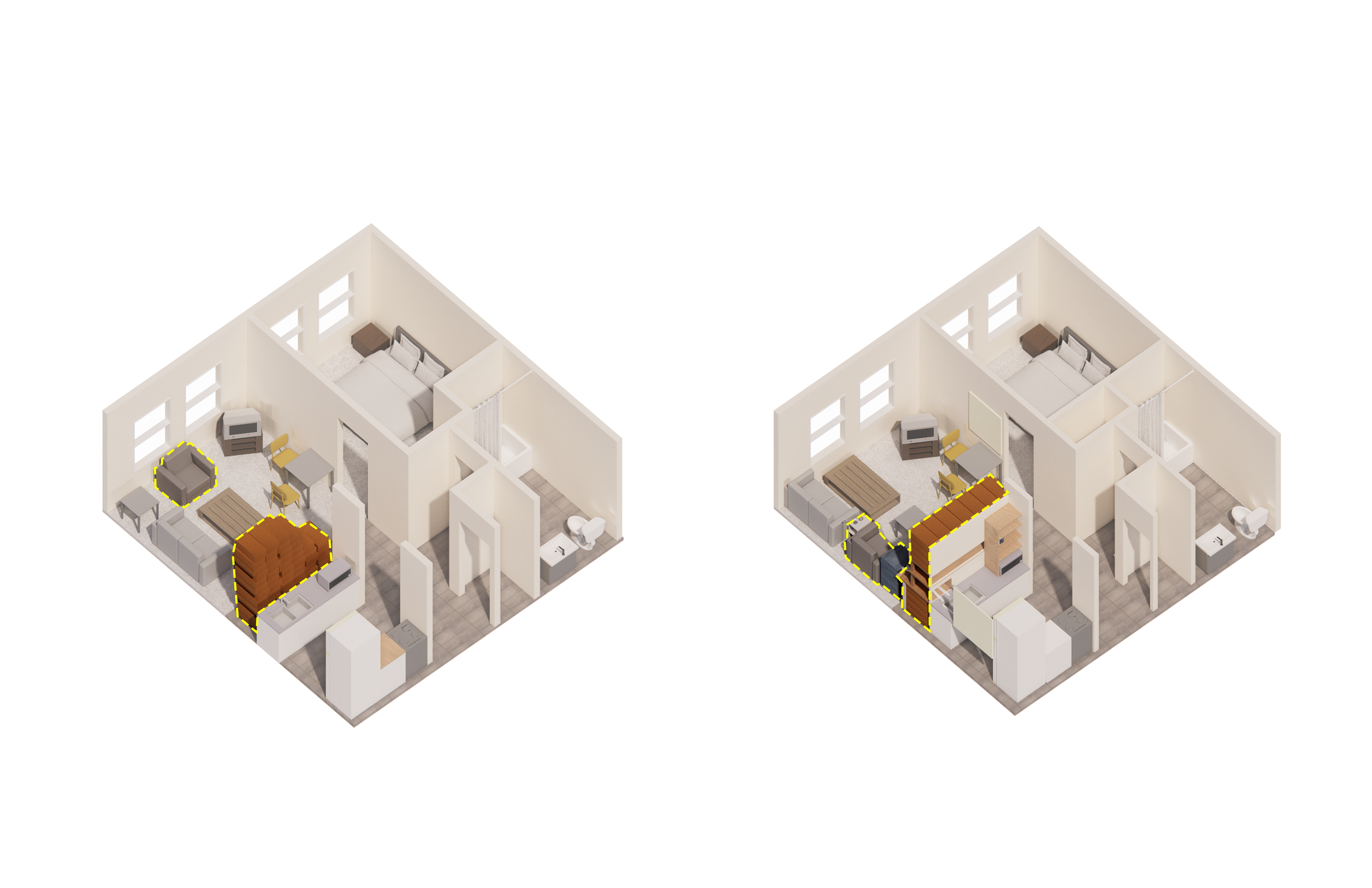 This project reorganizes Sean’s home around a calm care corner that supports daily self-care. By aligning spatial interventions with his routines, the design reduces stress, improves consistency in health management, and creates more space for family connection and long-term wellbeing.