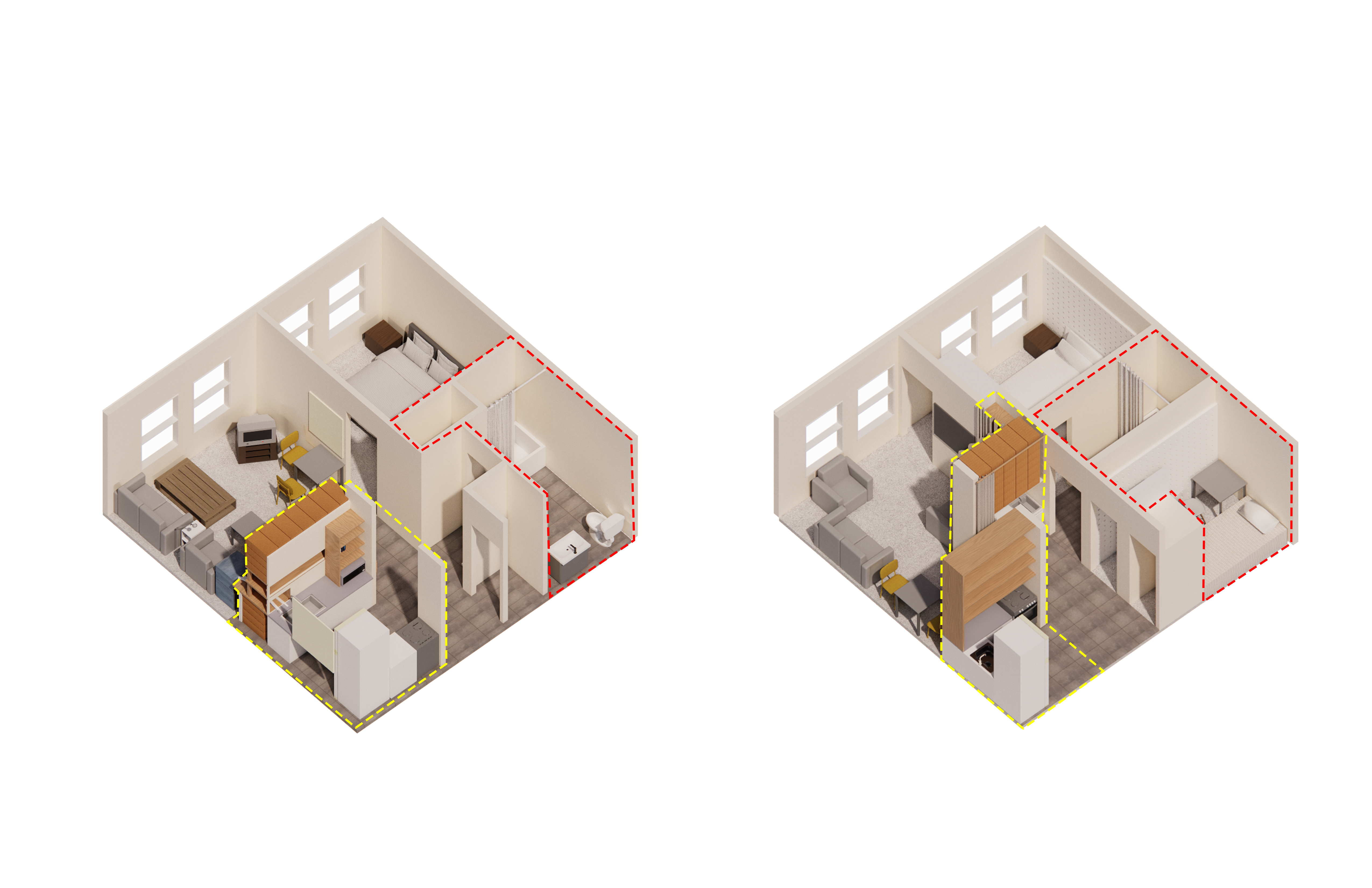 The project translates Sean’s daily stress points into spatial changes that support his routines and wellbeing by examining key moments in his everyday life. By aligning design interventions with how Sean actually lives, the environment reduces stress, streamlines care routines, and better supports his relationship with his daughter.