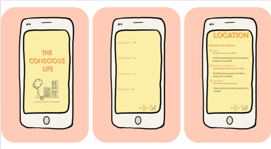 In addition to developing creative strategies to affect a decision, design intent were linked to research that enhance desired health outcomes. The proposals were evaluated and analyzed along the design continuum, which is a spectrum of scale: information, product, interior, architecture, urban realm, policy. Each proposal showcase a summary of research, images, and descriptions along the design continuum.
